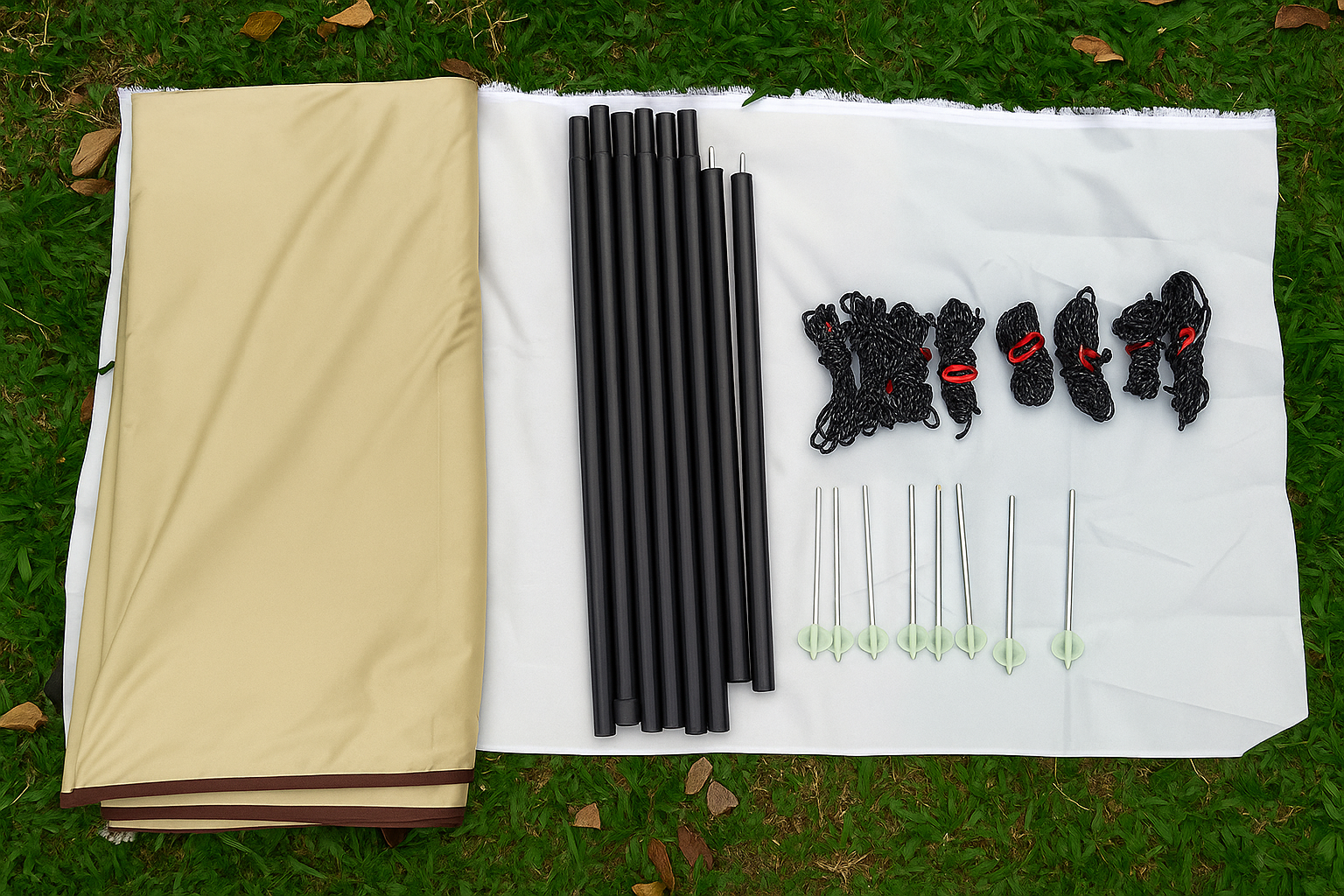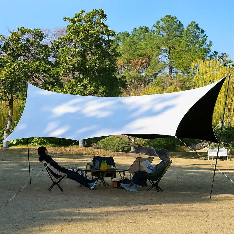 Whether you're at a campground, park, or on a river trip, this waterproof and sun-proof awning is a must-have kit. Available in two sizes, this simple awning provides shade for groups of 2 to 18 people.