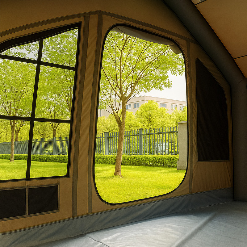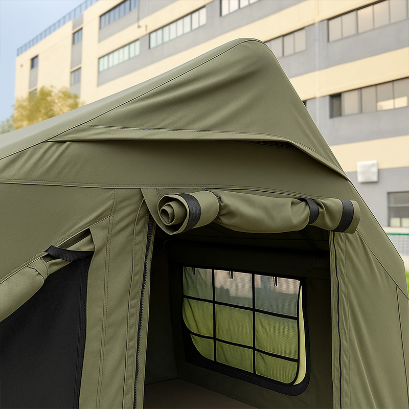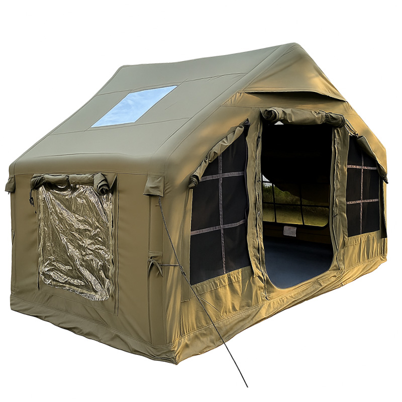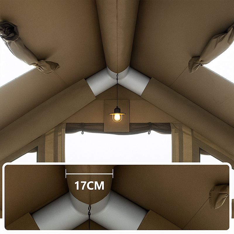 The Air Inflatable Tent including different size ,such as 320*250*220cm,400*300*210cm and so on, It can withstand 3000mm water pressure.This large tent for camping provides plenty of space for you and your friends or family to easily accommodate 3-8 people,The thickened air column design can resist the cold wind, and can also be matched with the canopy. There are many combinations for you to choose from.